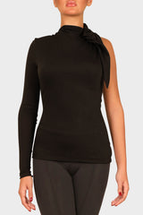 بلوزة قطنية بأكمام واحدة وياقة عالية