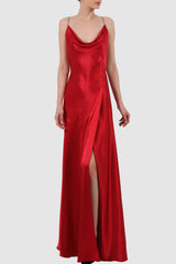 Draped Satin Silk Backless Gown